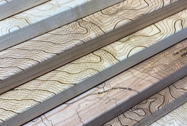 The Glowforge is a popular entry level laser and a great tool to generate custom map gifts and products with using our high contrast maps.